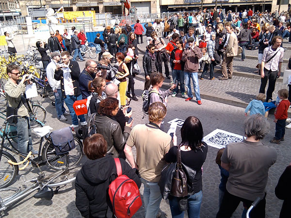 View of the Dam square - seen through Layar augmented reality browser #AR Flashmob in "Talk to Me" exhibition MoMA New York Video twittered by Maarten Lens-FitzGerald
