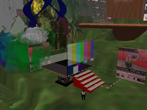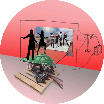 A platform carrying people is extended into the virtual reality of Second Life, an avatar inhabited world. The estimated weight of avatars standing on the virtual side of the platform is calculated, and processed together with the total weight of the people standing on the physical side of it. This leads to continuous adjustments in both the hydraulic powered part of the installation and the virtual part, making it a seesaw that lets both types of visitors experience and feel the weight of a virtual reality avatar.